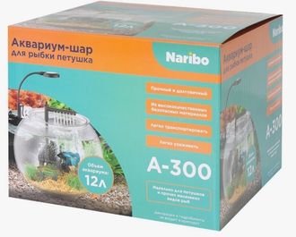 Аквариумный набор Naribo. В набор входит: аквариум-шар (пластиковый), фильтр, светильник, два USB адаптера. Аквариум объемом 12 литров, изготовлен из высококачественного пластика. В комплект входит фильтр мощностью 2,5Вт и производительностью 150 л/ч. Также входит светодиодный светильник мощностью 5Вт.
